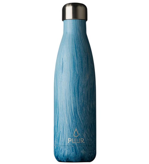El año 2016 me encuentro con éste concepto plasmado en una botella y decido crear Puurbottle, una botella de diseño, que gracias a su materialidad y forma, permite mantener la temperatura de los líquidos, hidratarnos de forma adecuada y aportar a disminuir el uso de botellas de plástica en el mundo.
