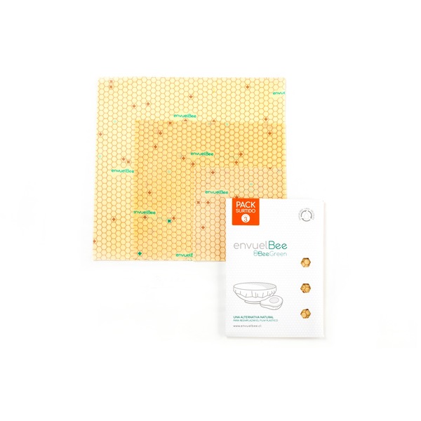 EnvuelBee es una alternativa para proteger y conservar los alimentos frescos por más tiempo y de manera sustentable, al ser lavables, reutilizables y compostables. Elaborados con tela 100% algodón, impregnada con cera de abejas y otros ingredientes naturales, libres de tóxicos, permiten que los alimentos respiren, manteniendo sus características originales de frescura por más tiempo. Se pueden utlizar para cubrir bowls, fuentes y platos o envolver directamente alimentos como quesos, frutas, cereales y sándwiches, reemplazando el plástico film. www.envuelbee.cl